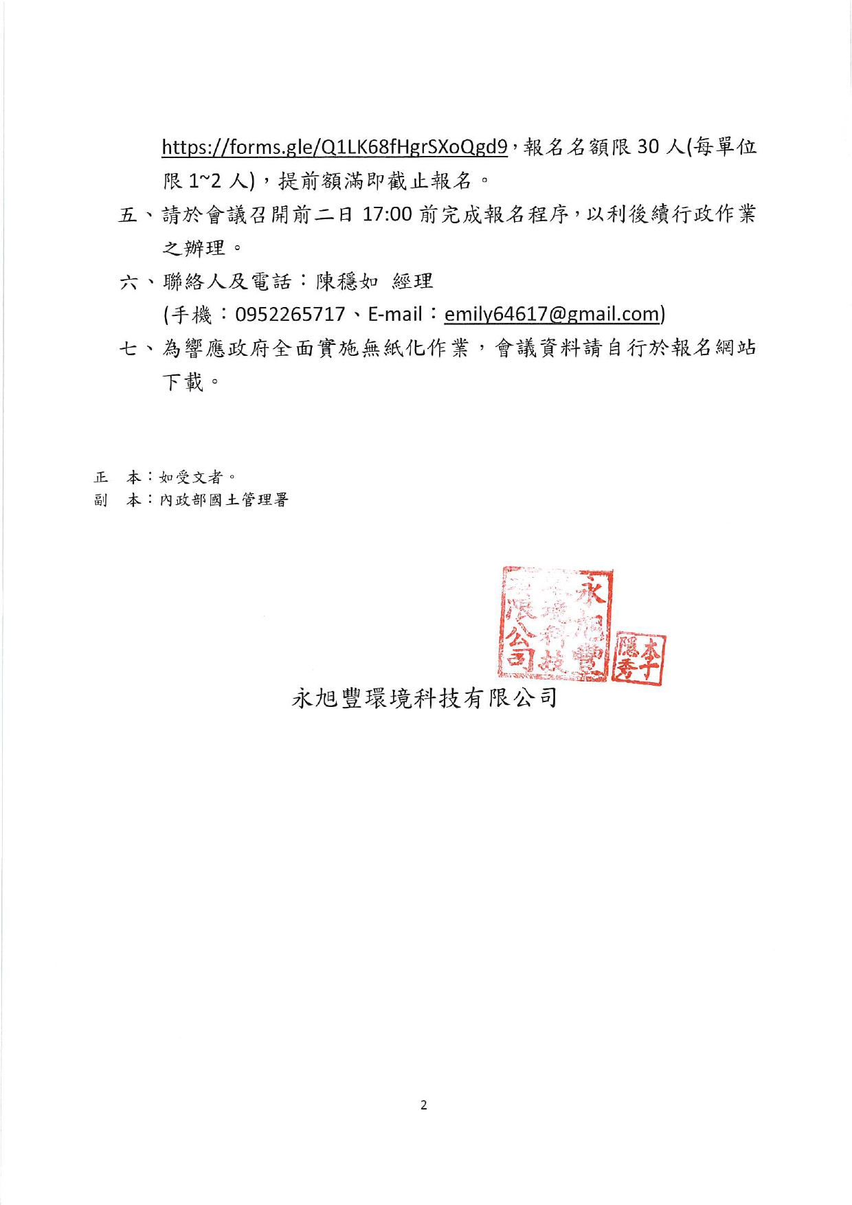 永旭豐環境科技有限公司 114.10.22 永旭環字第1141023001號函