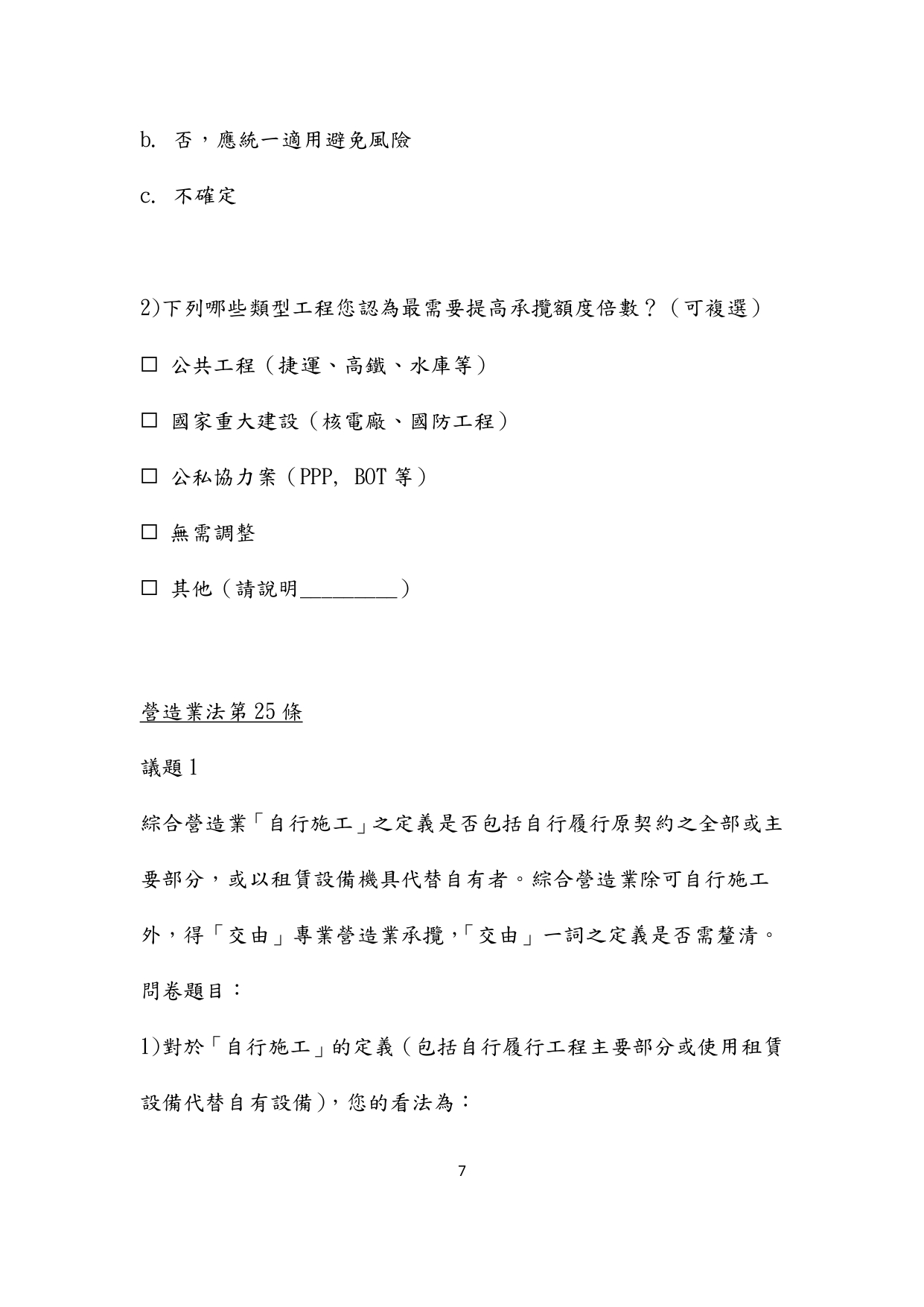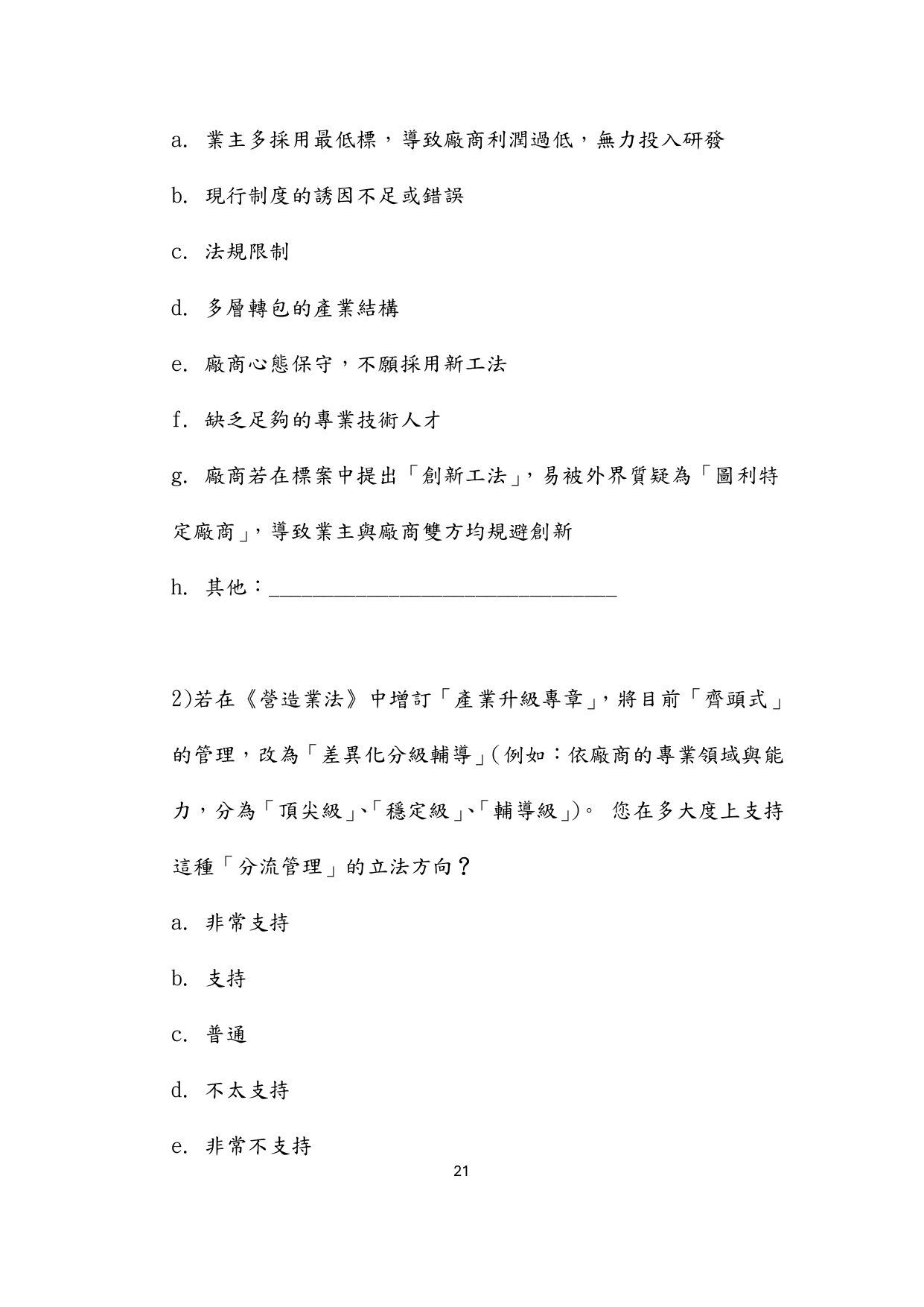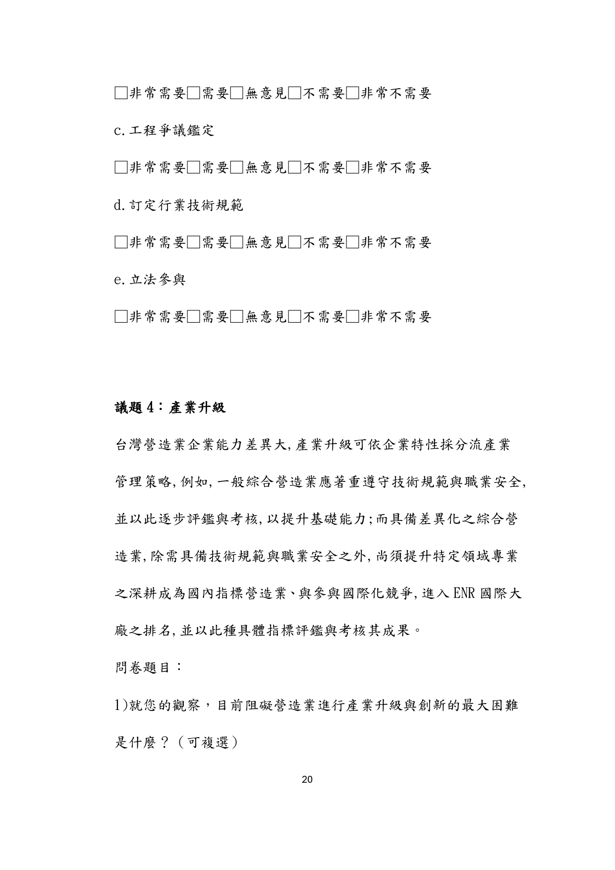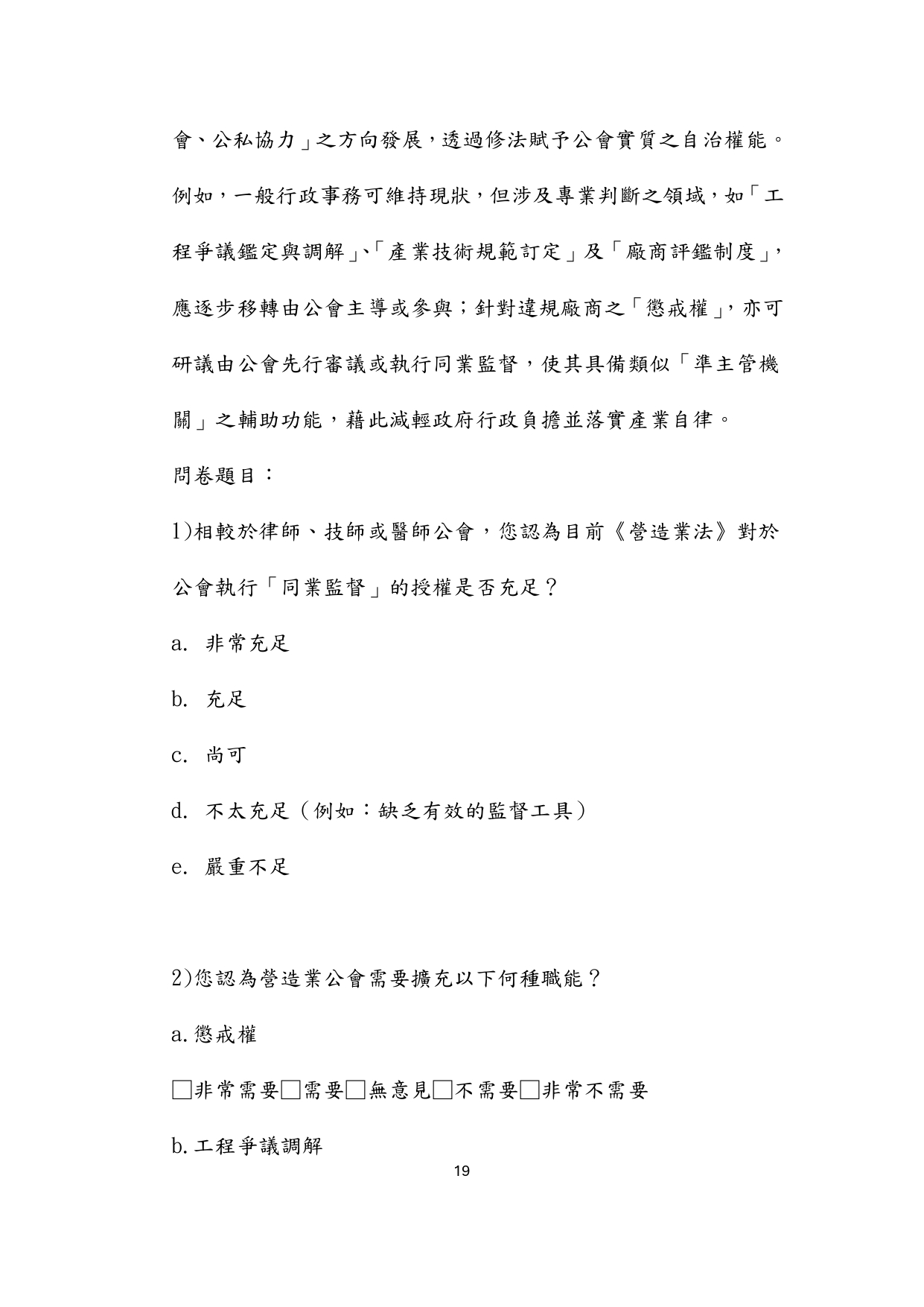特製作★「營造業法執行成效與革新探討調查問卷」(詳如附件或Google問卷連結:https://forms.gle/rq7JSKiMBCdsSrny7擇一回復), 請轉轄區會員協助填寫並回復相關問卷 ,以利彙整會員意見。