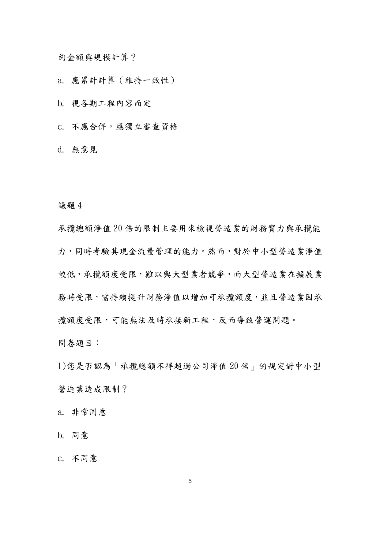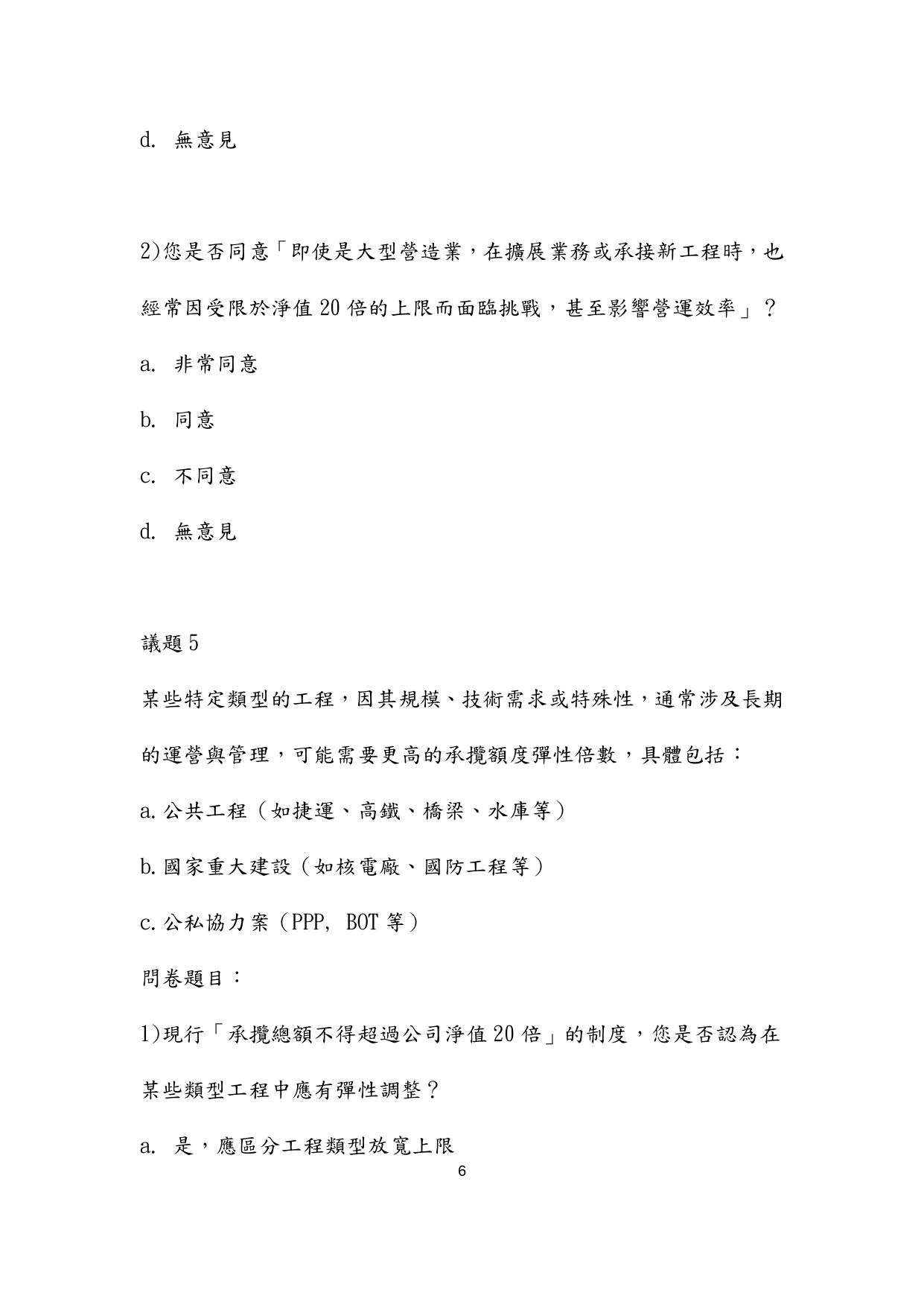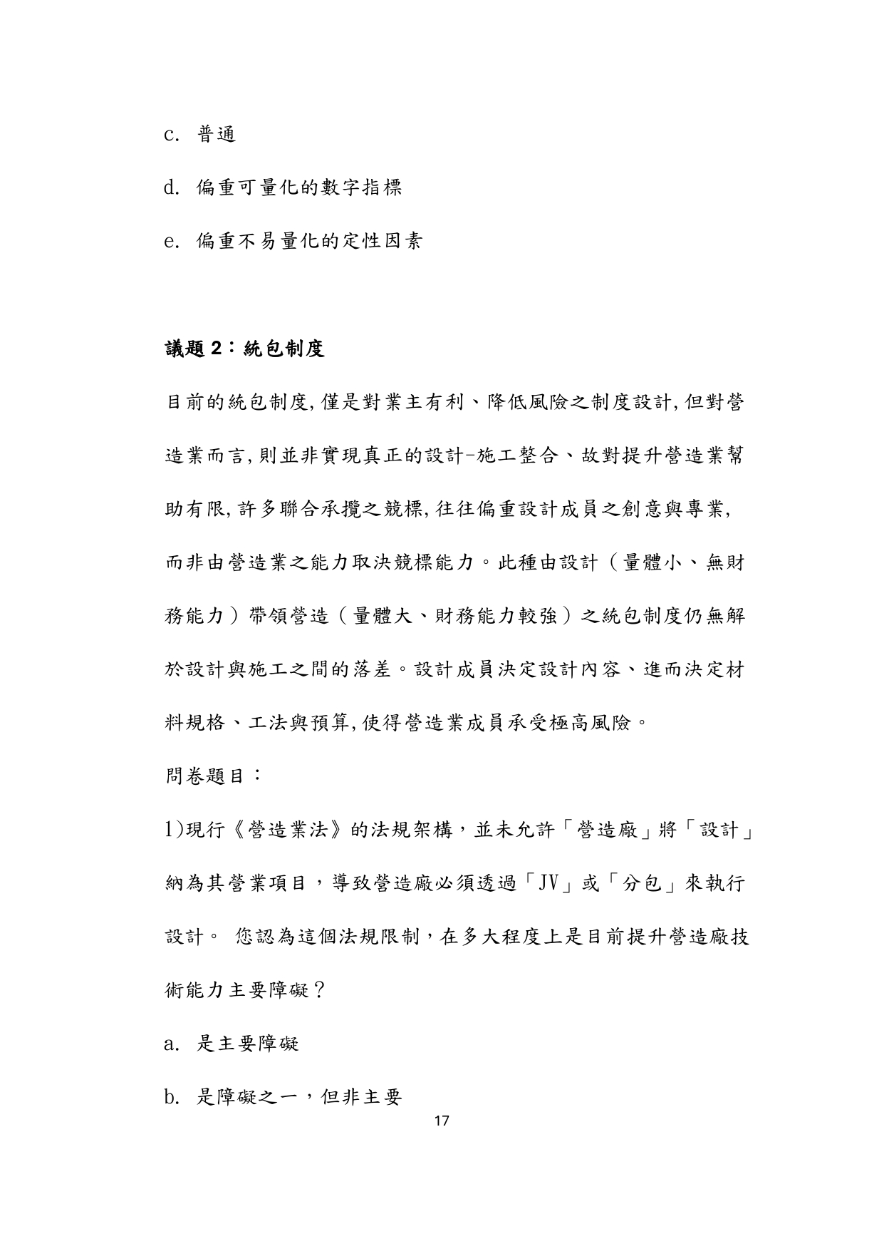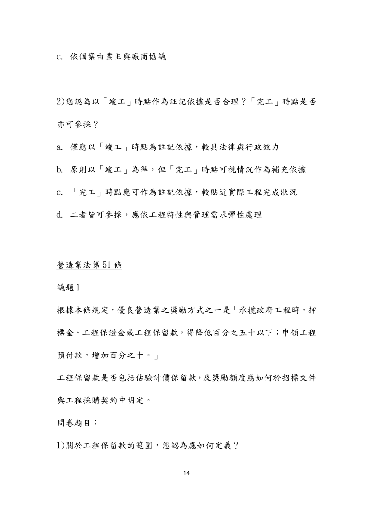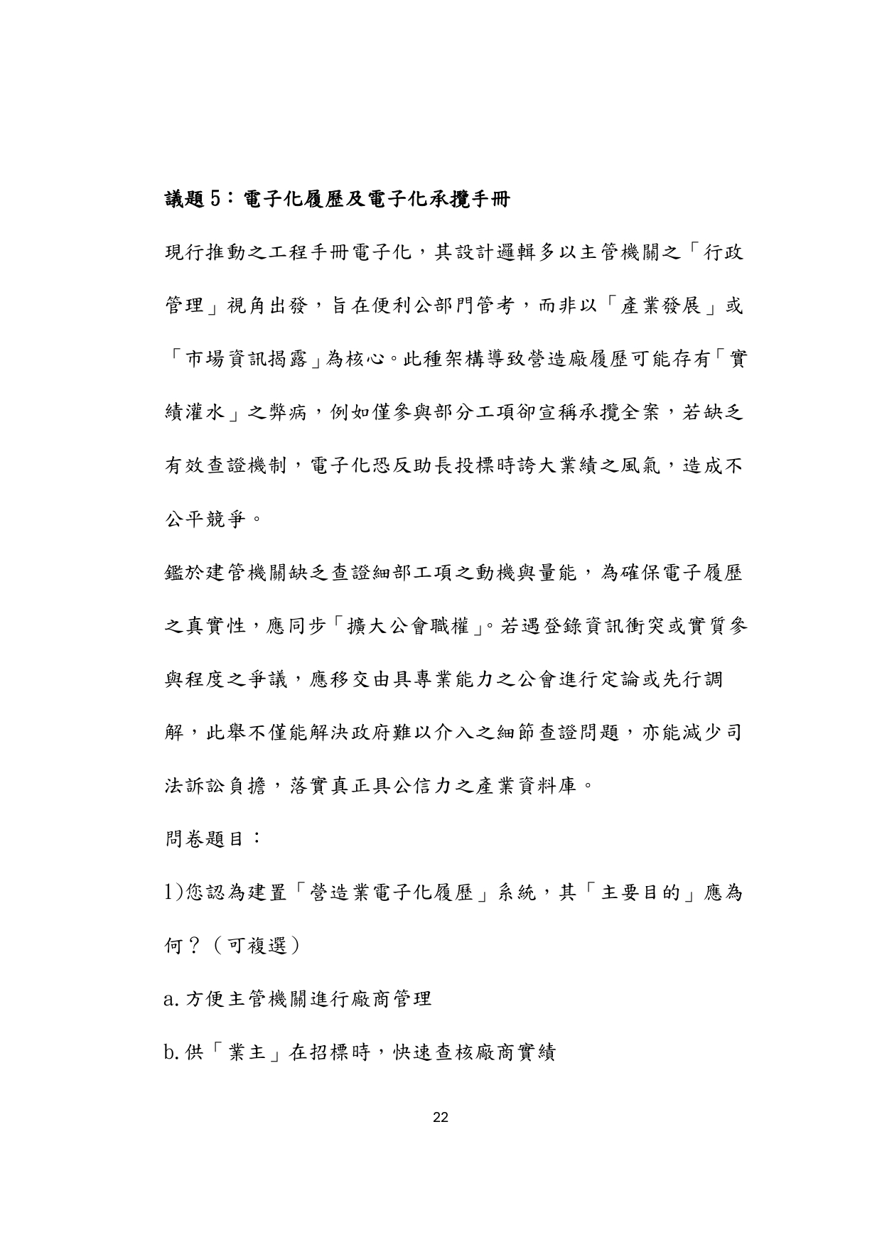 有關本會進行「營造業相關制度革新之研究-以營造業法為核心研究計畫案為使本研究案符合業界需求及掌握面臨之實際問題,