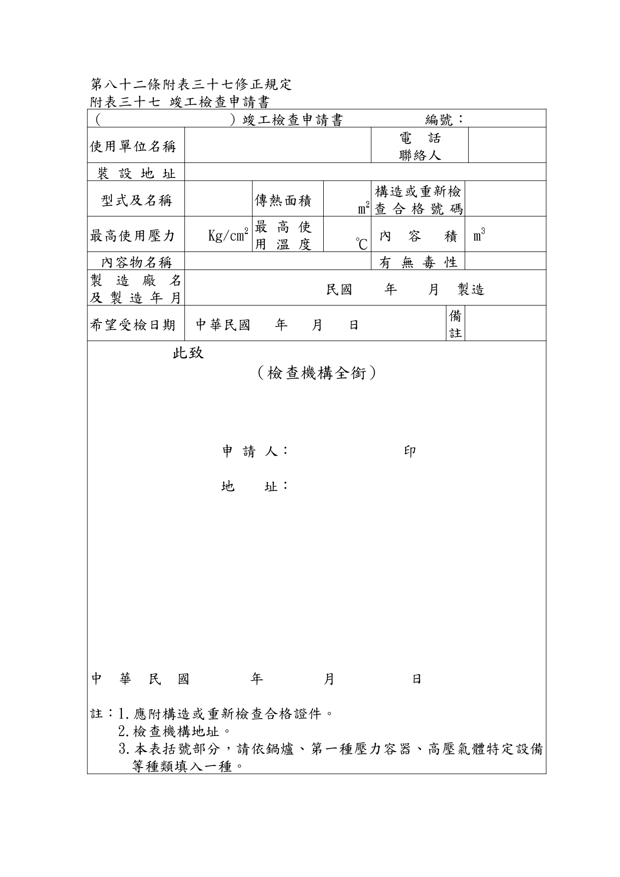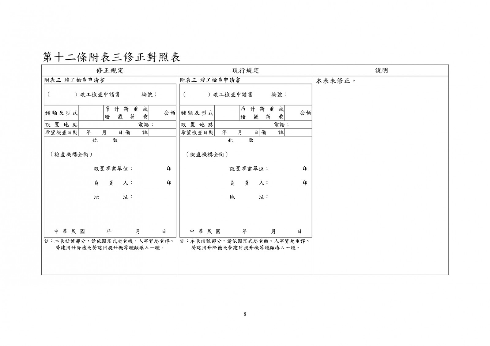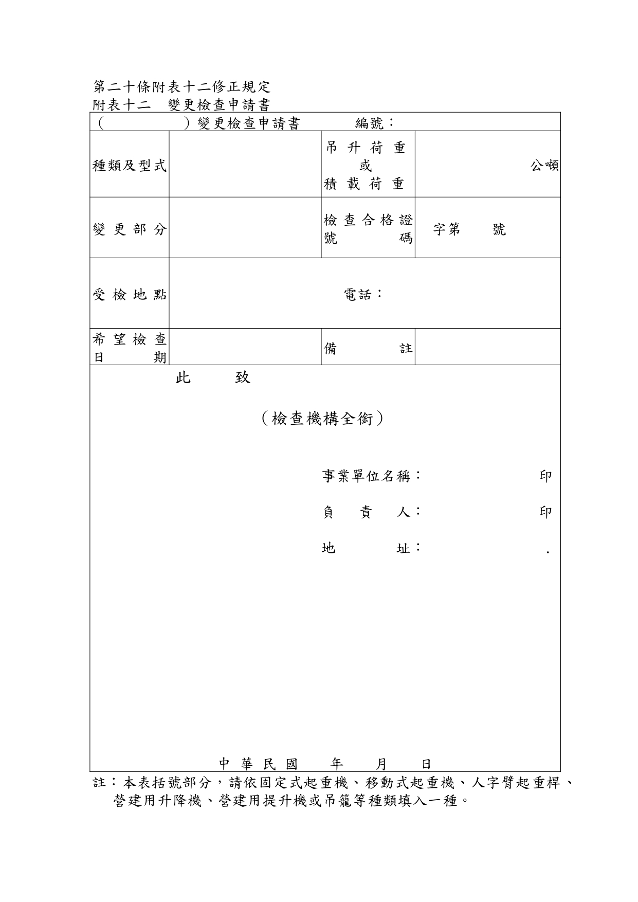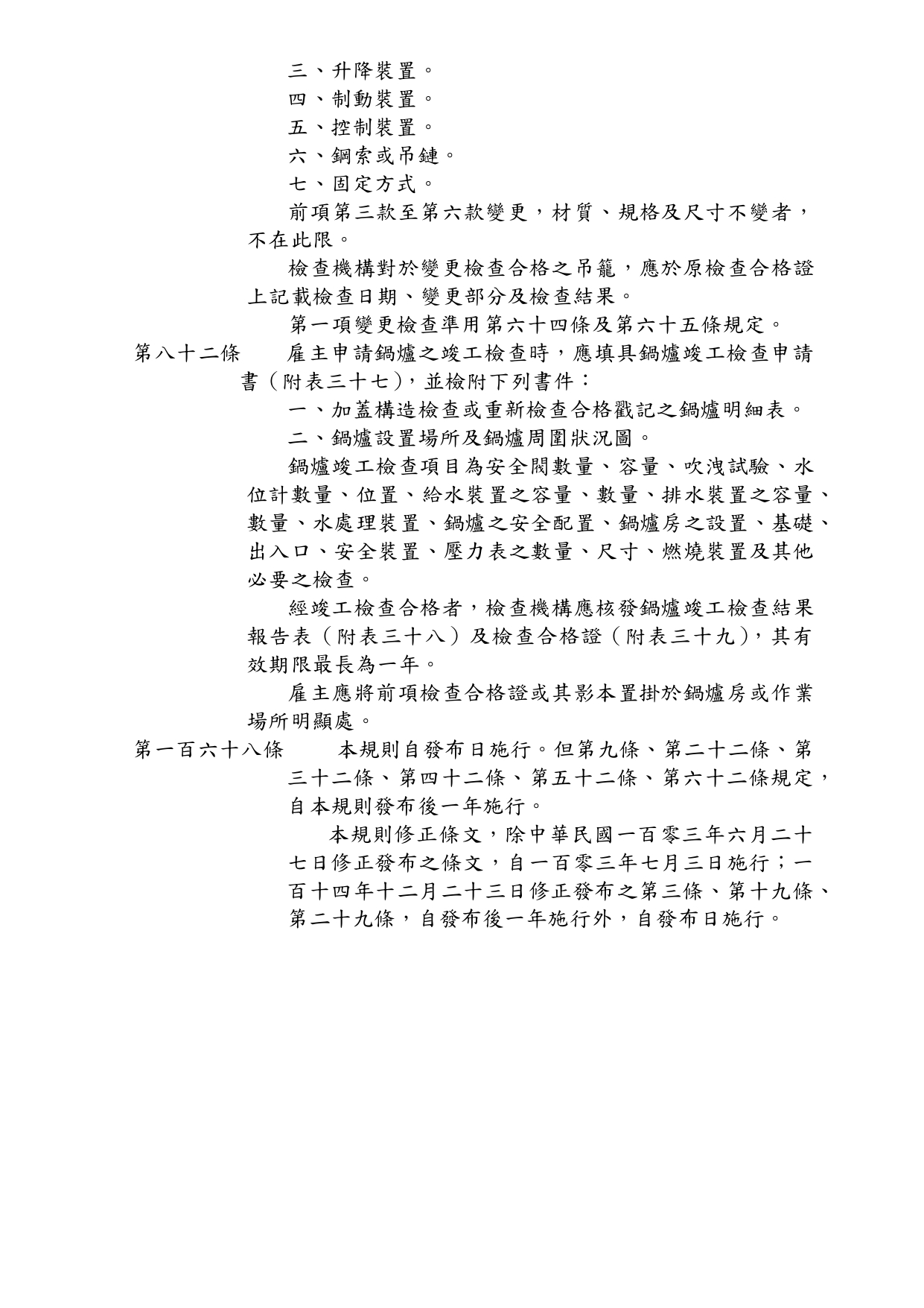 勞動部於中華民國114年12月23日以勞職授字第1140255230號令發布修正「危險性機械及設備安全檢查規則」部分條文 2026-01-08 檔案下載 內政部國土管理署 115.1.2 國署營字第1140143205號函 轉知勞動部於中華民國114年12月23日以勞職授字第1140255230號令發布修正「危險性機械及設備安全檢查規則」部分條文