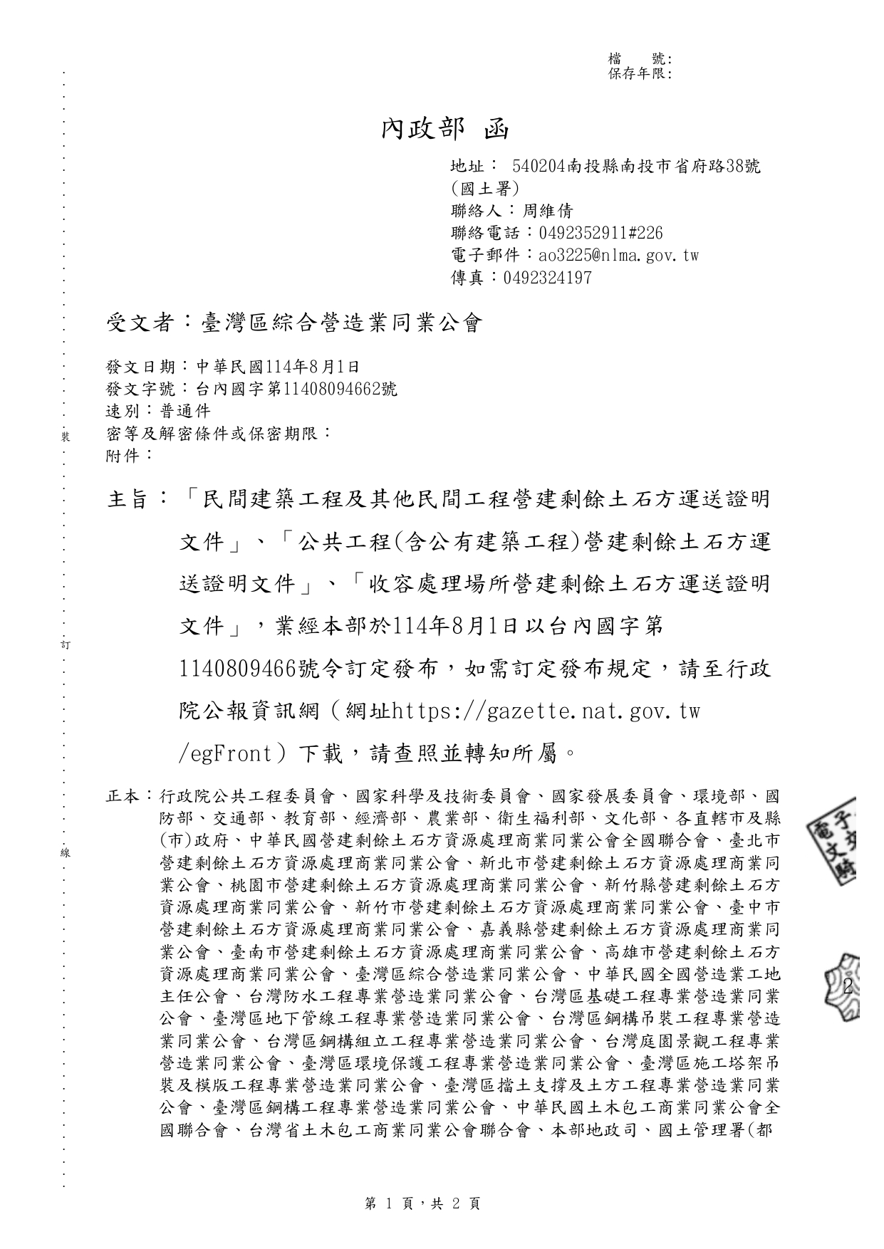 內政部 114.8.1 台內國字第11408094662號函
